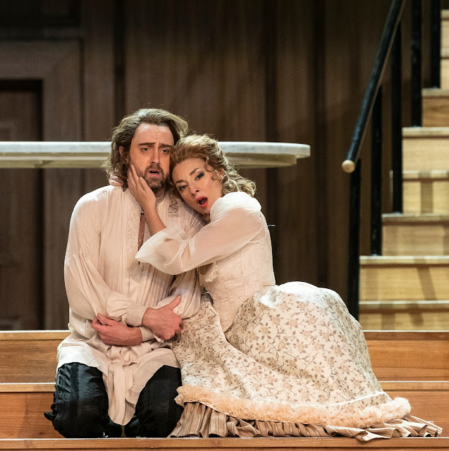 Es bueno leer estos comentarios porque a mi me pasó lo que se dice aquí, en un momento, ya avanzada la ópera me atacó una especie de aburrimiento. Demasiado estática, demasiado mismo escenario, pero el final, ese duo de la escena final fue muy bello. Es raro ver una opera del siglo XX con la estructura del siglo XVIII. El clave en el recitativo fue apoteótico.